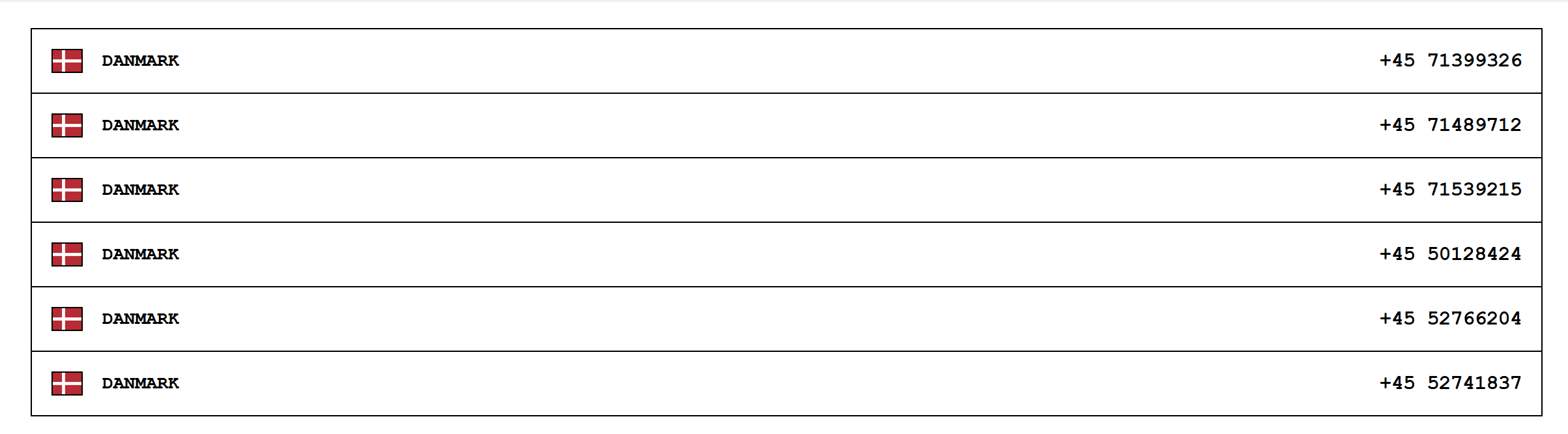 Denne platform tilbyder et udvalg af flere numre fra disse tre lande, som du kan vælge imellem.