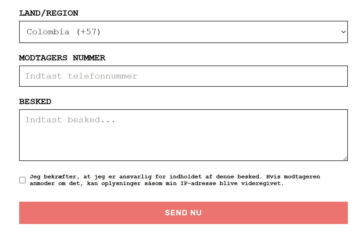 Efter SMS'en er sendt, skal du opdatere siden regelmæssigt eller trykke på knappen for at få de nyeste meddelelser.